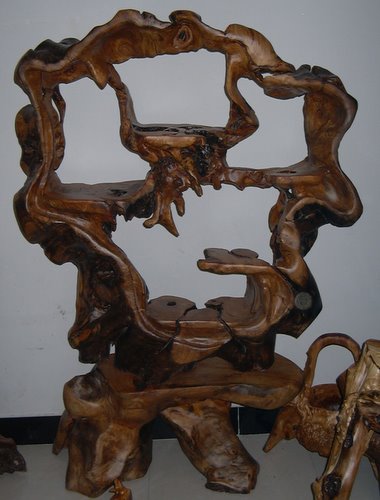 天然根雕博古架