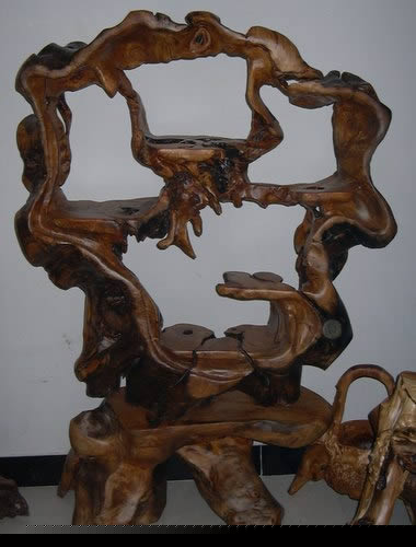 > 天然根雕博古架